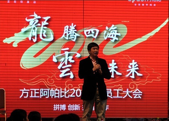 2012年2月9日下午,主題為“龍騰四海·云啟未來”的方正阿帕比2012員工大會(huì)在中關(guān)村中鋼大廈江南賦宴會(huì)廳召開,來自全國(guó)各地的300多名阿帕比員工與集團(tuán)領(lǐng)導(dǎo)嘉賓齊聚一堂,共同回顧了過去一年的工作和成績(jī),也共同展望了今后三年方正阿帕比的發(fā)展目標(biāo)和方向。今年的方正阿帕比員工大會(huì)多處創(chuàng)新,不僅把以往由公司一至兩位領(lǐng)導(dǎo)做全年總結(jié)的形式改為由公司總辦會(huì)全體成員進(jìn)行匯報(bào),而且匯報(bào)形式也由長(zhǎng)篇PPT改為輕松活潑的對(duì)話聊天和文藝表演,通過簡(jiǎn)單生動(dòng)的方式讓員工了解了公司的計(jì)劃和變化,也讓員工與公司的關(guān)系更加和諧。在工作會(huì)環(huán)節(jié)之后,本屆方正阿帕比員工大會(huì)還有一場(chǎng)精彩的文藝晚會(huì),晚會(huì)中不僅有眾多普通員工帶來的各種才藝表演,還有一個(gè)由方正阿帕比總辦會(huì)全體成員表演的舞蹈情景劇,場(chǎng)面非常火爆。整個(gè)晚會(huì)呈現(xiàn)出一片歡樂和諧的景象,讓所有阿帕比人的心都緊緊聚在了一起。