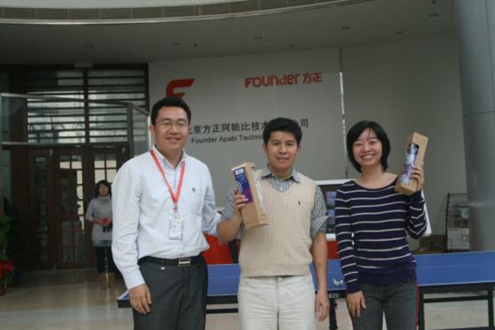 為了強(qiáng)健大家的體魄,加深同事之間的溝通與交流,10月下旬方正阿帕比首屆乒乓球比賽火熱開幕。經(jīng)過9個(gè)比賽日的激烈爭奪,方正阿帕比首屆乒乓球賽圓滿落幕,最終名次如下: