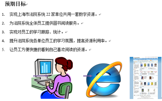 上海市高級(jí)人民法院是上海法院系統(tǒng)內(nèi)22家單位的領(lǐng)導(dǎo)單位,至2008年以來上海高法開始選用方正阿帕比數(shù)字資源解決方案,本著開源節(jié)流的原則推動(dòng)數(shù)字化資源建設(shè)。經(jīng)過四年的建設(shè)方正阿帕比數(shù)字資源種類豐富、版權(quán)徹底、資源質(zhì)量高更新快、擁有專業(yè)的資源個(gè)性化應(yīng)用平臺(tái)等特點(diǎn)得到了上海高法的一致好評(píng),因此上海高法成為了上海及全國各上下級(jí)單位的數(shù)字資源平臺(tái)建設(shè)的參觀考察點(diǎn)。2012年上海高法再次投入重金搭建上海法院文化網(wǎng),在此次文化網(wǎng)的搭建中上海高法已向上海22家法院系統(tǒng)內(nèi)部單位提供資源共享服務(wù),阿帕比豐富的數(shù)字資源內(nèi)容、個(gè)性化的應(yīng)用平臺(tái)及先進(jìn)的版權(quán)保護(hù)技術(shù)也在上海法院界得到了認(rèn)可。
