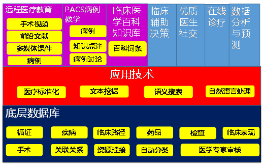 依托于方正阿帕比醫(yī)藥領(lǐng)域相關(guān)的豐富底層資源,應(yīng)用中文分詞技術(shù)、非結(jié)構(gòu)化信息抽取、文本挖掘、自然語言處理、語義搜索和數(shù)據(jù)統(tǒng)計(jì)分析預(yù)測(cè)等先進(jìn)技術(shù),打造一個(gè)集臨床醫(yī)學(xué)百科知識(shí)、臨床輔助決策、PACS病例教學(xué)、在線診療、遠(yuǎn)程醫(yī)療教育等功能于一體的醫(yī)療知識(shí)服務(wù)平臺(tái),從而為醫(yī)學(xué)院學(xué)生和住院醫(yī)師提供學(xué)習(xí)參考,提高廣大基層醫(yī)療人員的醫(yī)療水平,為醫(yī)生提供臨床輔助決策,提供優(yōu)質(zhì)醫(yī)生互動(dòng)交流和學(xué)習(xí)提高平臺(tái),為醫(yī)院和醫(yī)療監(jiān)管部門提供數(shù)據(jù)分析和趨勢(shì)預(yù)測(cè)。