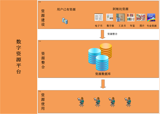 方正阿帕比數(shù)字資源平臺是一套用來管理、展示用戶購買的阿帕比授權(quán)數(shù)字資源(包括電子書、數(shù)字報、年鑒、工具書和藝術博物館)和用戶加工的自有數(shù)字資源的平臺系統(tǒng)。數(shù)字資源平臺不僅能夠整合多種數(shù)字資源,還對其進一步整合、挖掘,從內(nèi)容層面對其進行包裝,為用戶提供知識級的服務。還提供統(tǒng)一的數(shù)字資源發(fā)布頁面,統(tǒng)一的用戶管理認證,統(tǒng)一的檢索入口。同時針對不同資源又有豐富的資源展示方式、導航方式和檢索方式,并能夠在內(nèi)容層面關聯(lián)不同類型的資源。