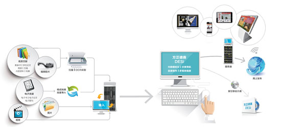 DESi數(shù)據(jù)加工與安全發(fā)布整體解決方案,基于成熟的方正Apabi網(wǎng)絡出版(eBook)解決方案之上,把擁有核心CEBX轉(zhuǎn)換技術和DRM技術軟件提供給客戶,保證了客戶自有特色資源的加工質(zhì)量和自有資源防擴散。使各企事業(yè)單位以較少的成本,快速建立的電子資料室。具有占地少、硬件和軟件投入小、數(shù)據(jù)量大、更新迅速、借閱方便,不受時間和地點限制等優(yōu)點。該解決方案涵蓋了電子資源格式轉(zhuǎn)換、標引、分類、目錄制作、多媒體鏈接,安全發(fā)布系統(tǒng)的全文檢索、分類瀏覽、下載瀏覽、收藏等全面功能,并為用戶提供高質(zhì)量的下載服務和方便、好用的閱讀工具。